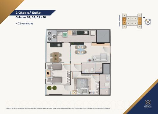 São opções de unidades com 02 e 03 quartos com suíte e ainda conta com unidades com terraço e piscina privativa, além de cobertura duplex, todas com 01 ou 02 vaga de garagem.