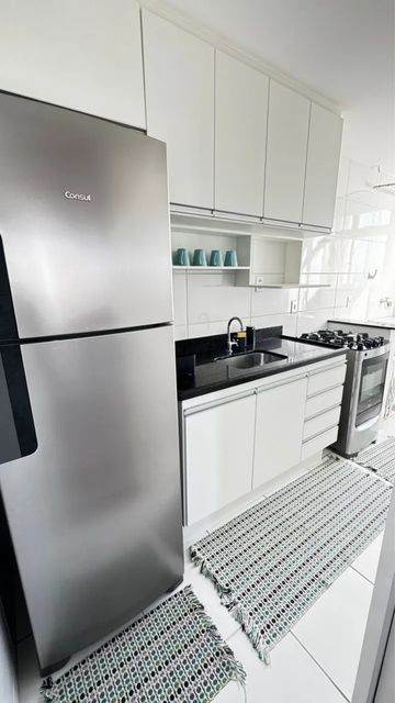 A área social foi planejada para proporcionar convivência agradável no dia a dia, com sala integrada que favorece a iluminação natural e a circulação entre os ambientes. A cozinha atende bem à rotina doméstica e se conecta de forma prática com a área de serviço, criando uma dinâmica funcional para o cotidiano.