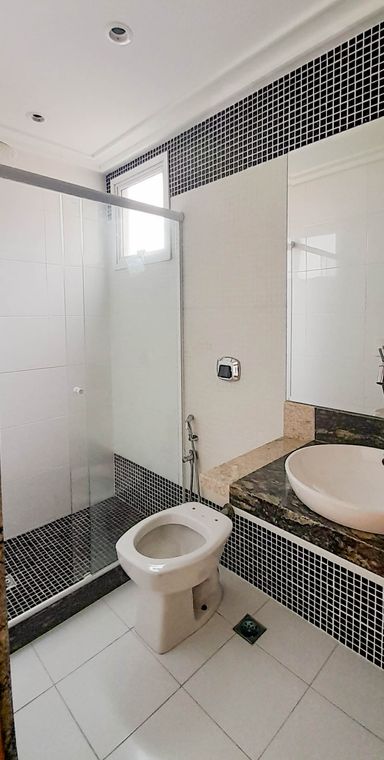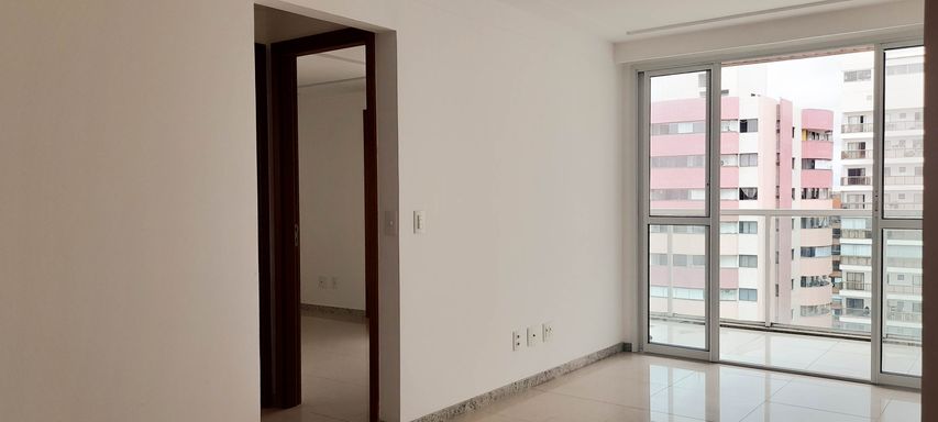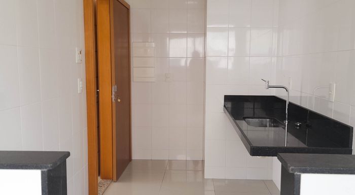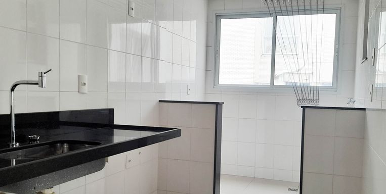 Sala, varanda, cozinha, 2 quartos sendo 1 suíte, um banheiro social, área de serviço e 1 vaga de garagem.