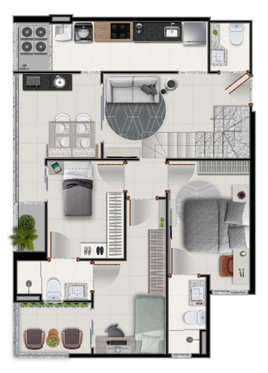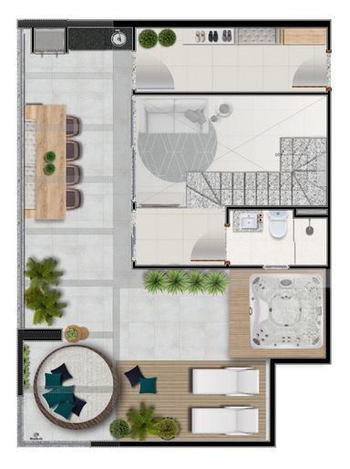 Apartamento Duplex, Sala, varanda, cozinha, 3 quartos sendo duas suítes, dois banheiros sociais, área de serviço e 1 vaga de garagem.