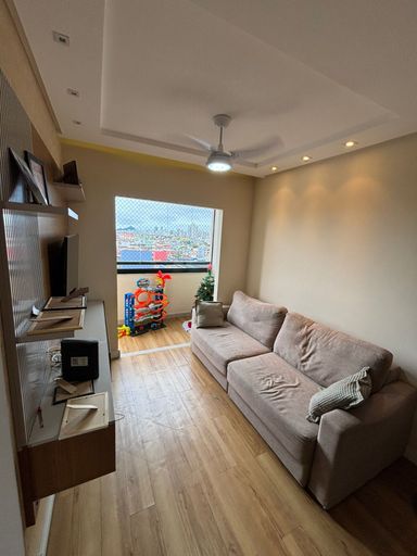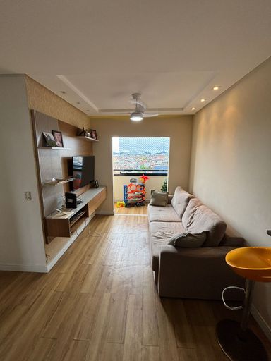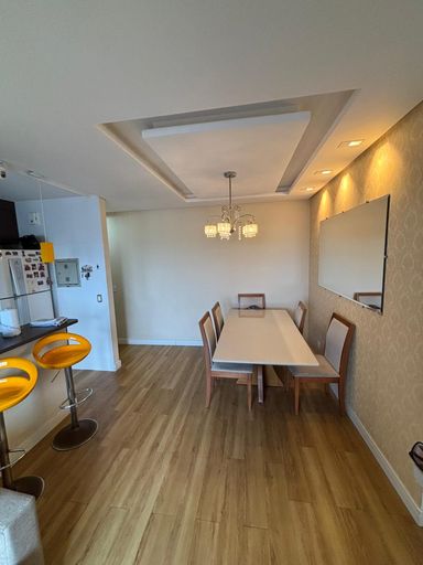 A área social integra sala de estar e jantar, criando um espaço agradável para receber visitas ou desfrutar de momentos de convivência. A iluminação natural contribui para deixar o ambiente ainda mais confortável, enquanto a disposição dos cômodos favorece a circulação e o aproveitamento dos espaços.