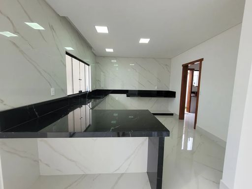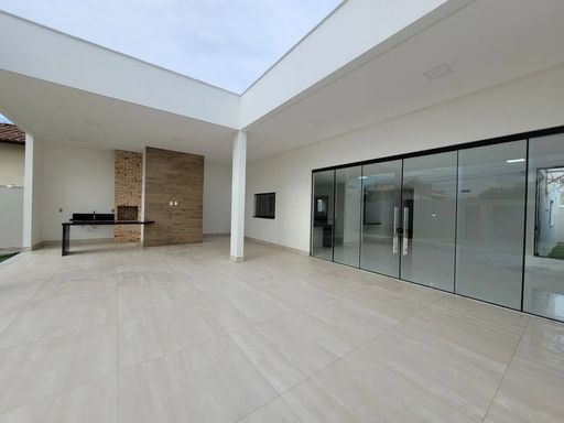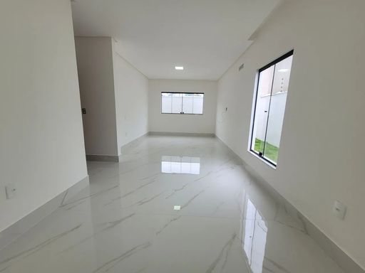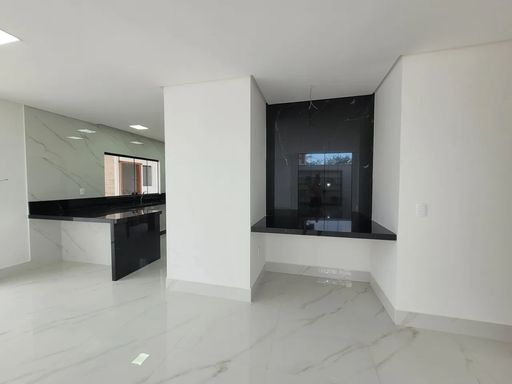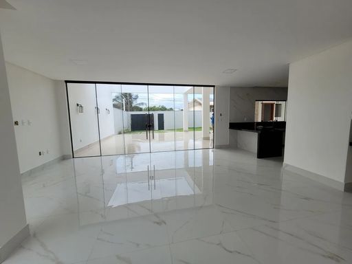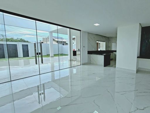 Logo ao entrar, a casa revela uma sala ampla e bem iluminada, que cria um ambiente convidativo para convivência e integração do dia a dia. A cozinha possui layout funcional e se conecta diretamente à área gourmet com churrasqueira, formando um espaço ideal para preparar refeições, receber visitas e aproveitar bons momentos.