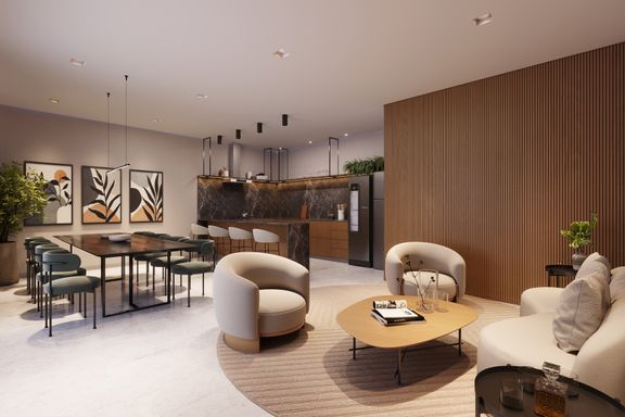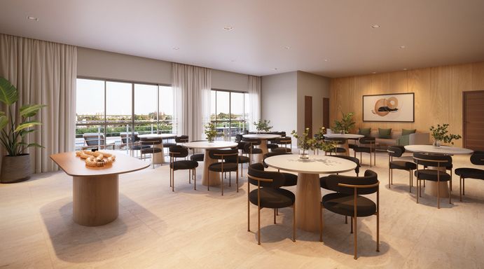Conta ainda com portaria 24h, controle de acesso, elevadores e áreas comuns com design contemporâneo e sustentável.