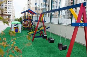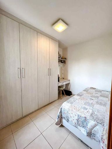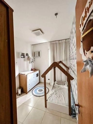Os três quartos, sendo uma suíte, estão equipados com móveis planejados e ar-condicionado, garantindo conforto térmico e organização.
