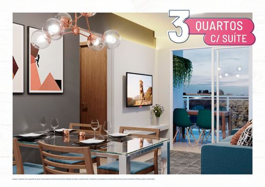 Varanda, sala, cozinha, 3 quartos sendo 2 suítes, um banheiro social, área de serviço e 1 ou 2 vagas de garagem.