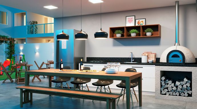 O condomínio oferece ampla área de lazer com Salão de festas, Churrasqueira, playground, piscina e vários outros itens e facilidades.