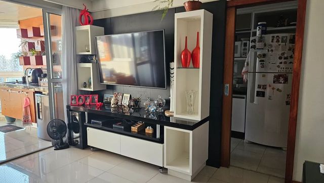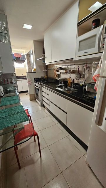O apartamento possui 3 quartos, sendo 1 suíte, sala ampla e integrada à varanda, cozinha moderna, área de serviço funcional, 2 banheiros e 2 vagas de garagem cobertas.